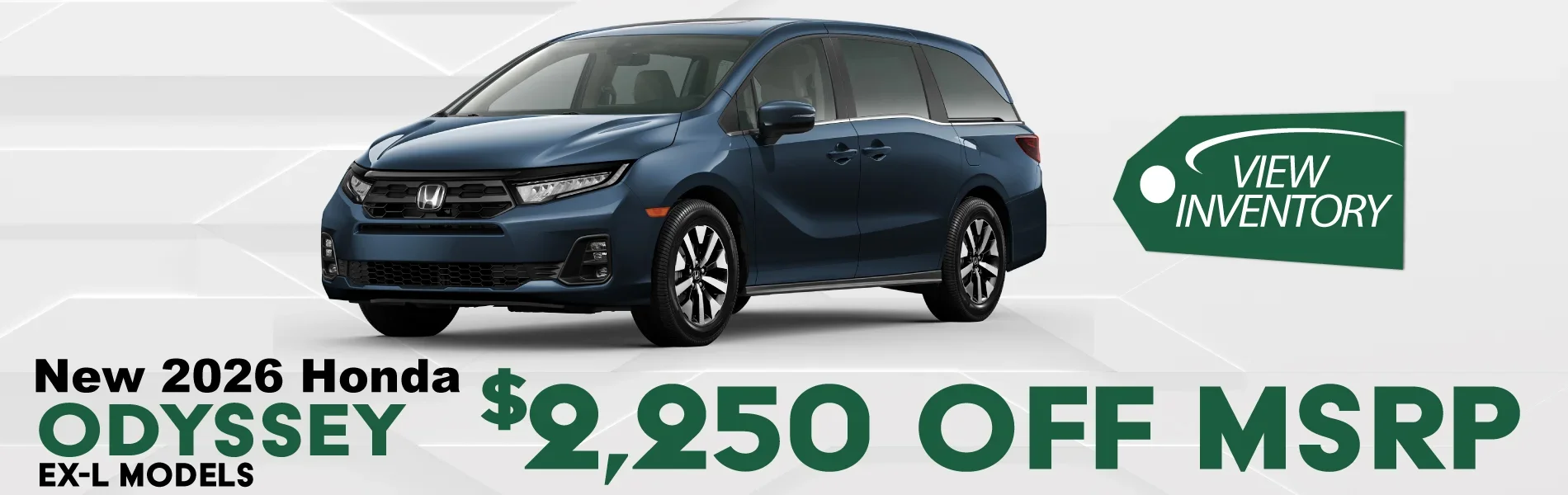 Disclosures: Offer available on select 2026 Honda Odyssey EX-L, Sport, Touring and Elite models. The discount is calculated from MSRP. Cannot be combined with any other offers. Price excludes tax, tag, title, and registration fee.